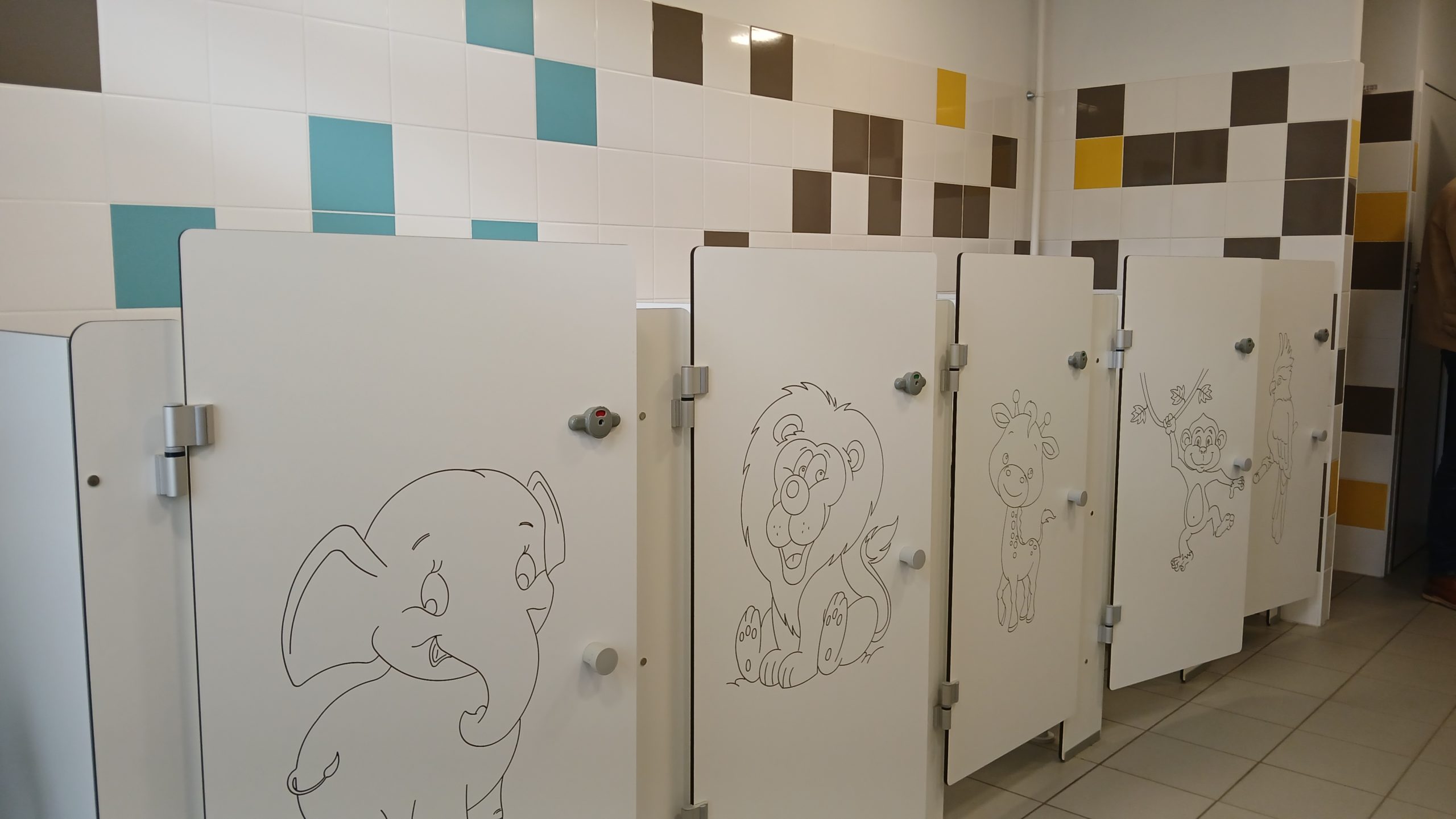 Les garçons et les filles sont désormais séparés et chaque bloc dispose d’une douche accessible. L’intimité des enfants est assurée par de nouvelles cloisons stratifiées.